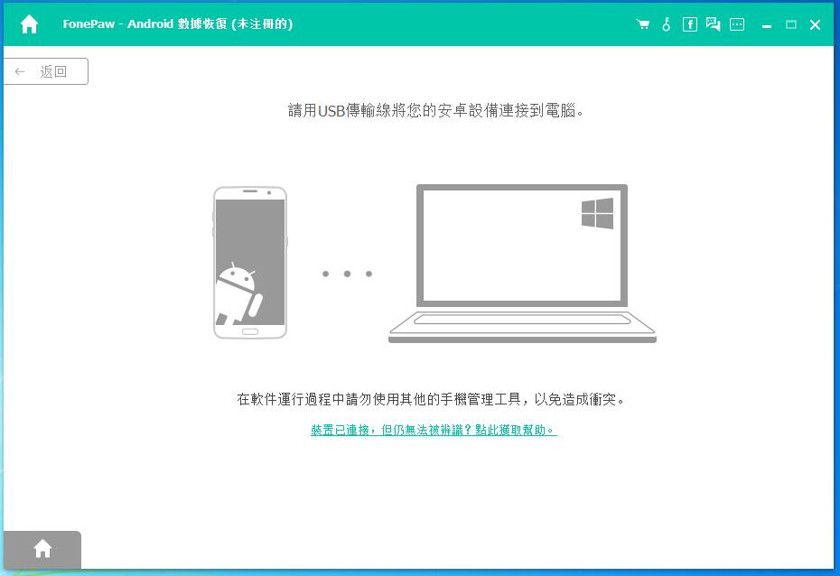 1、启动程序:在您的计算机上下载、安装并启动此软件,然后在界面上选择Android数据恢复。然后用usb线将android手机连接到电脑。