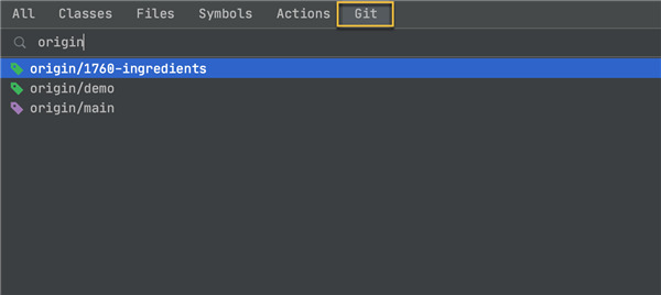 Search Everywhere 对话框现在具有一个新的 Git 选项卡。 现在,您可以查找分支,提交哈希、消息和标记。 您还可以直接在搜索字段中执行简单的数学计算。