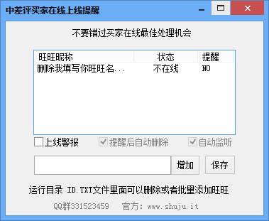 淘宝中差评买家在线上线提醒 V1.0 绿色版