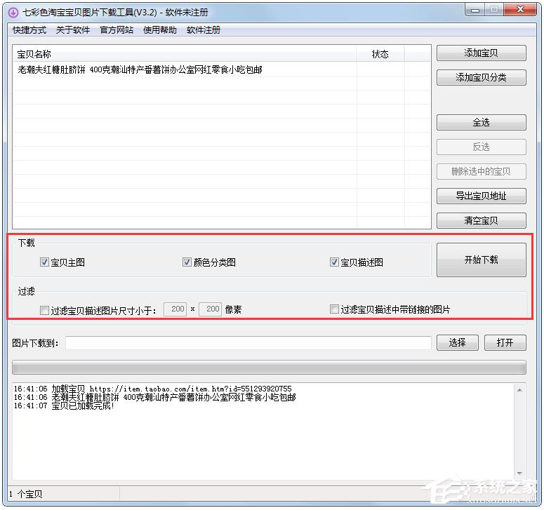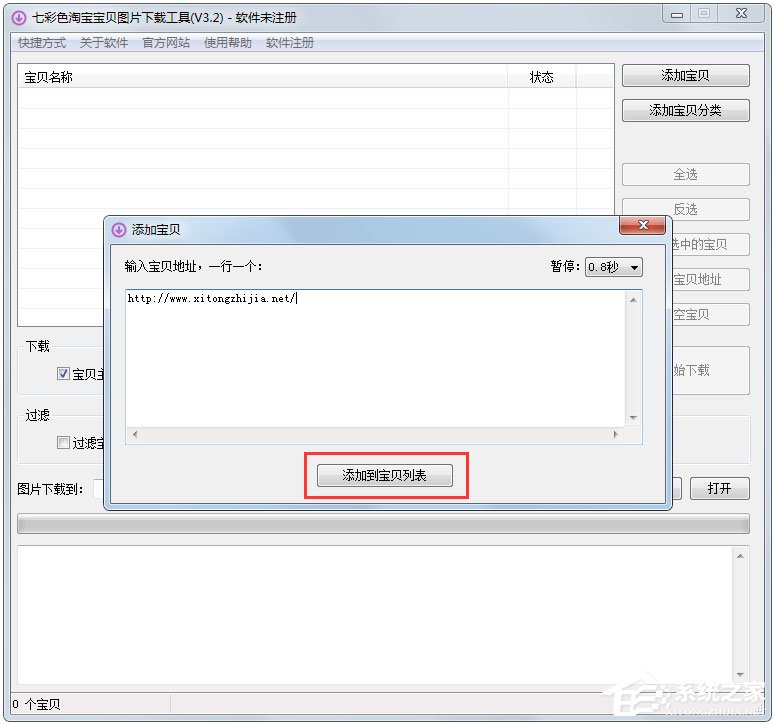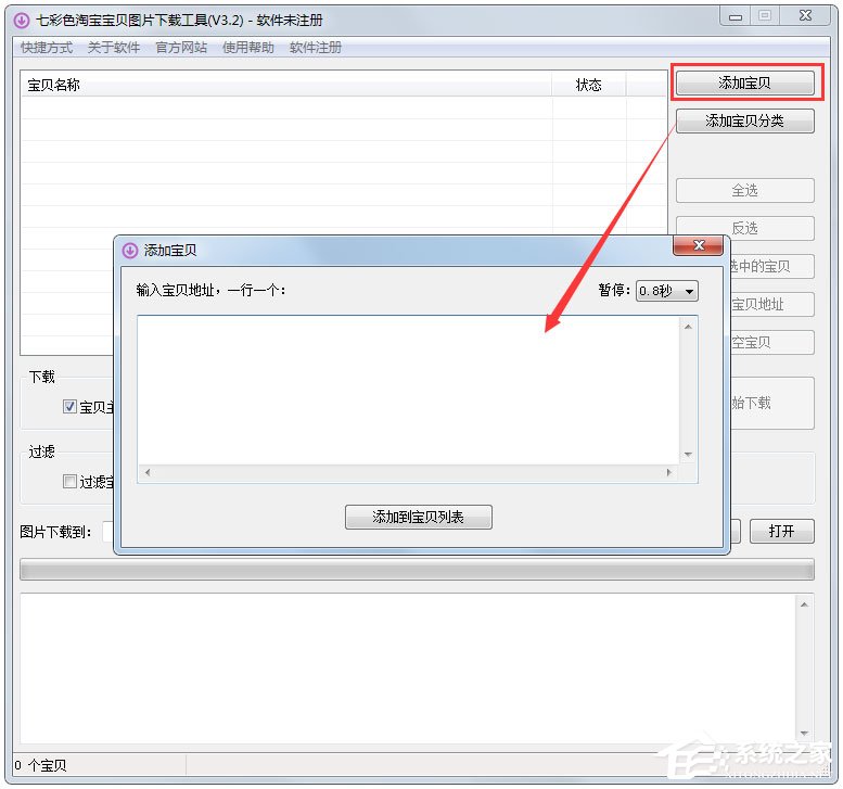 4、批量下载的功能支持,一次性的完成多个宝贝地址的输入。