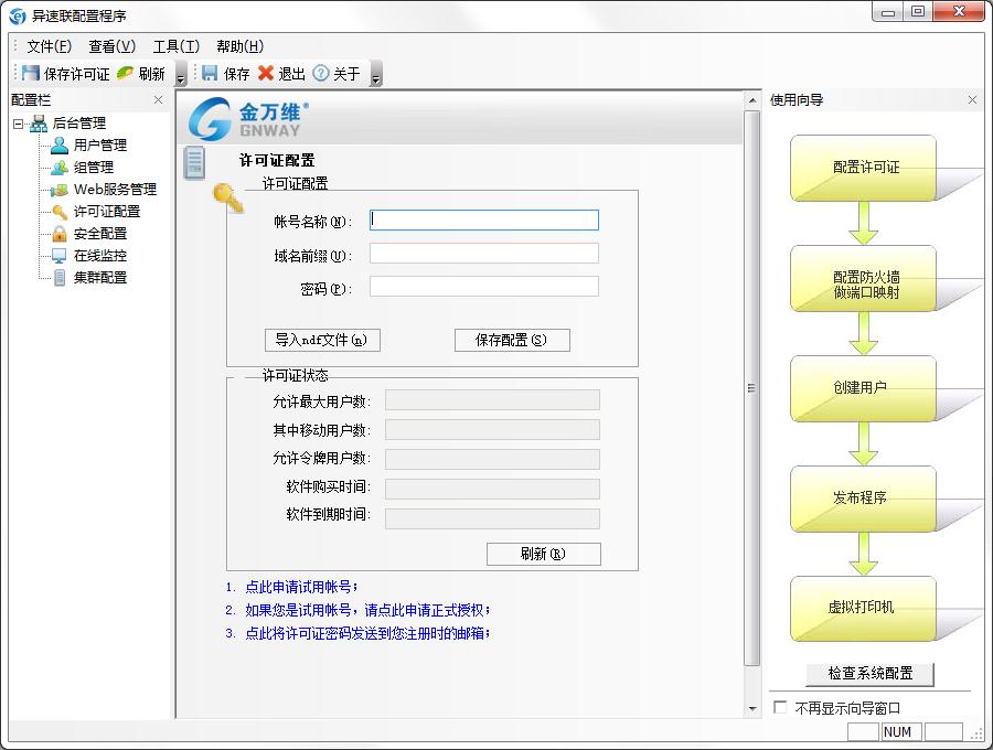 异速联客户端是北京金万维科技有限公司推出的具有自主知识产权的远程接入系统,统一部署、集中管理,减少远程客户机维护,实现低带宽条件下对应用软件的快速远程接入,提升IT效率,将C/S架构转化成B/S架构,降低了对网络带宽的要求,同时避免在每台电脑的重复安装、调试、更新应用软件,从而降低企业信息化成本,提升工作效率,大大简化部署与管理复杂的计算环境。