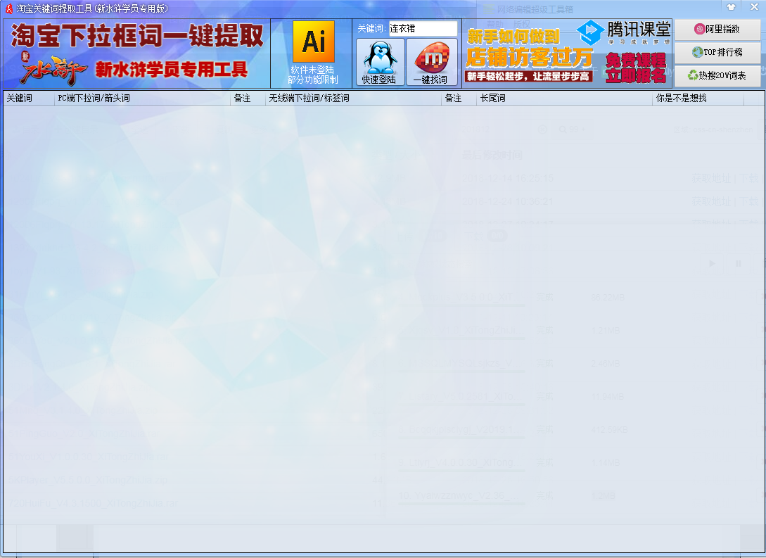 淘宝关键词提取工具是一款非常实用的淘宝商家辅助工具,该工具为广大用户提供了淘宝下拉关键词提取功能,用户可以通过下拉词,分析客户的需求,进行上新以及宝贝的上架等,非常的方便快捷。
