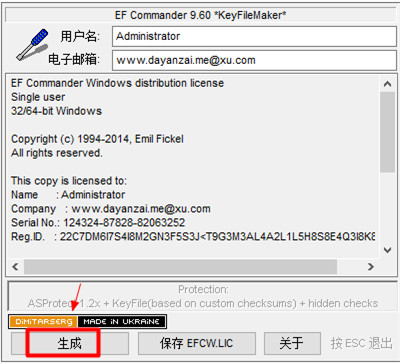 5、再点击保存EFCW.LIC,弹出提示生成成功,点击确定;