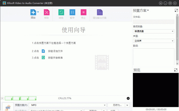 Xilisoft Video To Audio Converter是可以把视频文件转化成音频格式文件的一款多媒体格式转换工具,VI, MPEG, WMV, ASF都可以抓到音频文件中。还可以对各种音频文件进行相互转换,功能强大。