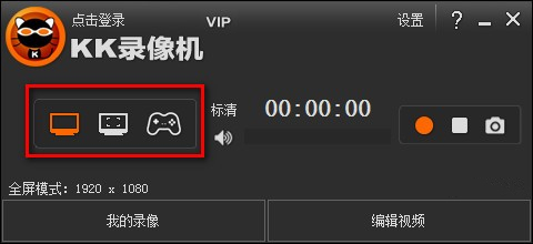 KK录像机针对不同的录制对象分为3种录制模式,准备录制前必须选择合适的录制模式。