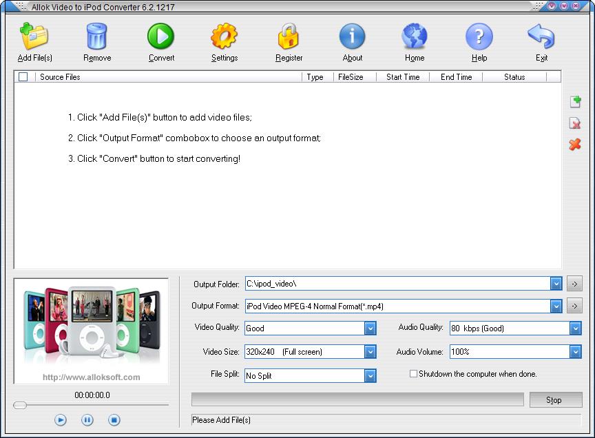 Allok Video to iPod Converter(视频转换为iPod格式) V6.2.1217 英文安装版