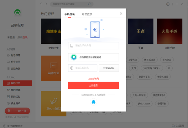 召唤租号是一款游戏租号平台,拥有着海量热门游戏的账号出粗,各种不同等级、段位游戏账号满足用户各种需求,便宜又安全,通过远程一键登录完全不担心账号的泄密等问题,保障用户账号安全!有需要的小伙伴快来下载使用吧!