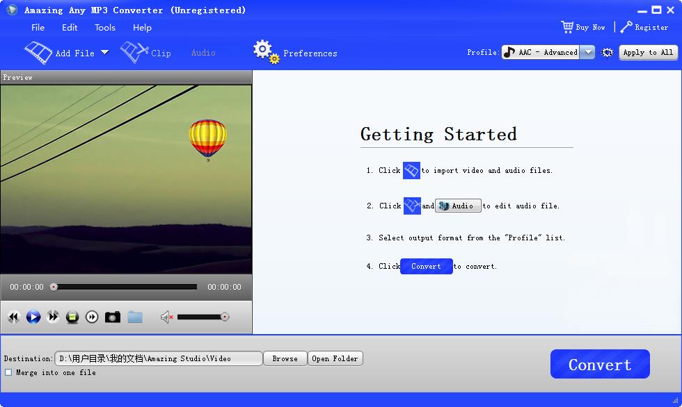 1、Amazing Any MP3 Converter提供音乐转换功能。