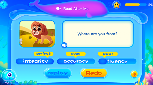 提供口语跟读的功能,并且可以从准确度、流畅度等多个角度来对学生的口语进行打分,纠正口语当中的错误。