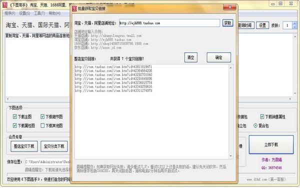 点击“获取宝贝分类”==“获取宝贝地址”==点击“确定”。