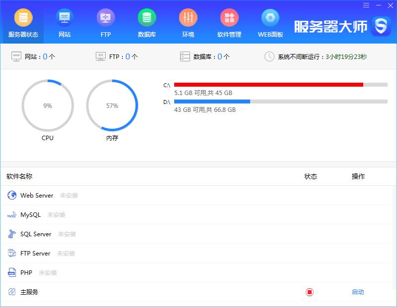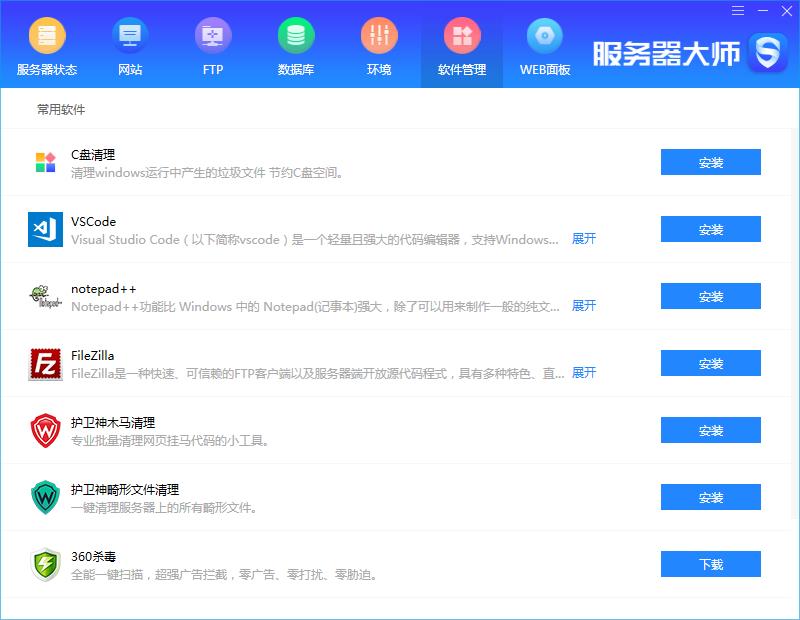 服务器大师是一款免费的虚拟主机站点建立工具,它反服务器管理简单化,特别适合于租用独立主机、vps、主机托管的站长使用,即使您是不懂得服务器管理技术的非专业人员,使用该工具,也可以轻松管理服务器。