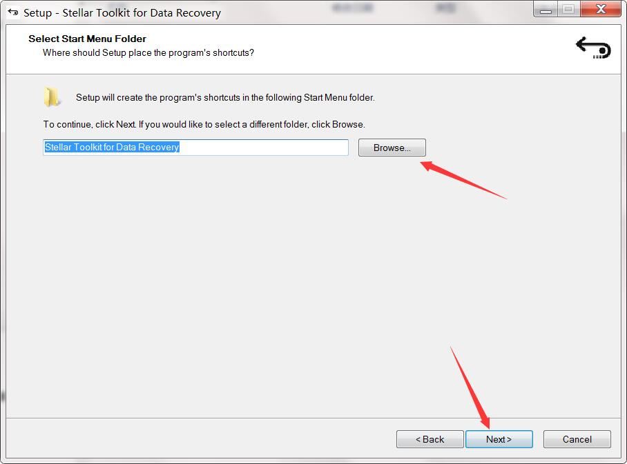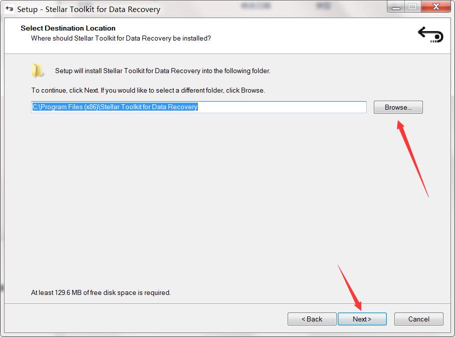 4、选择安装目的地,默认的是C:Program Files (x86)Stellar Toolkit for Data Recovery,可以点browse修改;