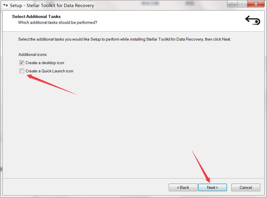 6、添加Stellar Toolkit for Data Recovery附加任务,在相应的选项前面打勾;