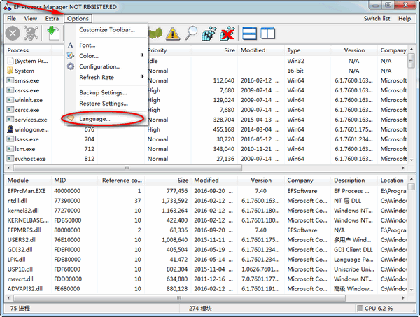 EF Process Manager是一款系统进程查看工具,除了查看系统进程和后台程序外,它还可以针对每个进程进行操作。软件支持多种语言。