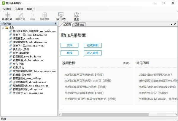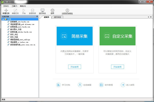 5、安装完成后,可以看到爬山虎采集器的主界面 main。
