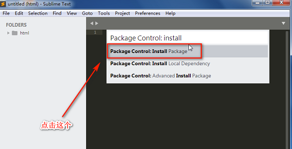 4、在打开的窗口中输入【install】,在出现的选项中找到【Package Control Install Package】选项;