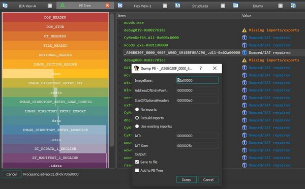 PE Tree是黑莓推出的一个逆向工程工具,用于使用pefile和PyQt5在树状视图中查看可移植可执行(PE)文件的 Python模块,还可与IDA Pro一起使用以转储内存中的PE文件并重建导入。