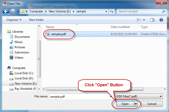 1)在Windows PC上运行PDF密码重新执行器后,首先需要做的是添加锁定的PDF文件,该文件的密码需要恢复。单击左上角的“打开”按钮(或选择“文件打开文件”菜单项)并浏览目标PDF文件。