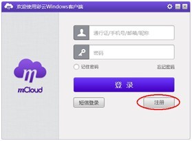 你可在和彩云PC客户端界面点击“立即注册”,即可跳转到互联网通行证注册页面。注册互联网通行证后,系统会分配一个9位或以上数字的通行证号。您可以使用通行证号,以及与互联网通行证绑定的手机号码、邮箱地址登录互联网通行证或飞信、139邮箱、和彩云、和彩云通讯录、移动微博业务。