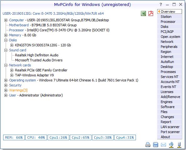 *MVsoft MvPCinfo绿色版不需要安装在工作站上,可以运行从软盘,或网络驱动器或从域登录脚本。