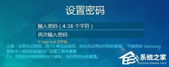 4、当您重新安装T3硬盘的时候,最好是设置一个密码,防止比人偷取您的硬盘。
