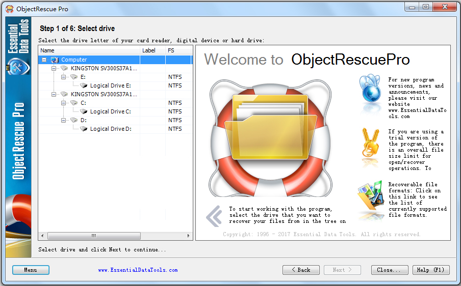 Digital ObjectRescue Pro能够将你的数字视频数据、音频数据、MP3和WMA数据进行恢复的工具,包括硬盘数据、闪存卡、MP3、WMA、PDAs、手机、MMCs卡、SD卡等里的数据,并能储存和添加其他文件格式包括:DOC, XLS, ZIP,AR,JPEG, AVI, MOV,MP3, WMA, WAV等。