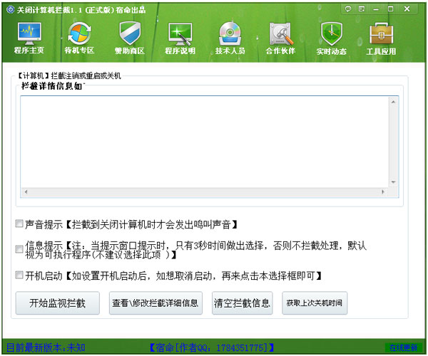 4、拦截的时候为什么不能操作,当程序执行拦截关闭计算机时,需要几秒(3到5秒)可恢复正常使用!不会对系统有任何影响。