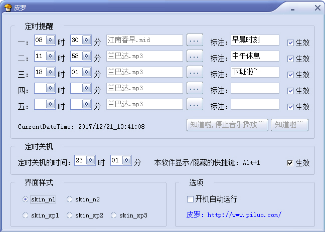 皮罗定时器顾名思义就是一款功能强大的定时器软件,该定时器软件能轻松设置时间事件提醒,当然它还可以设置定时关机,如果大家有需要的话赶紧下载吧!
