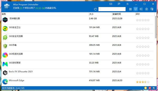 Wise Program Uninstaller具有直观,现代的界面,还使您可以根据名称,大小,日期和审阅来组织应用程序,以快速找到要卸载的软件。或者,您可以键入名称以立即找到该软件。