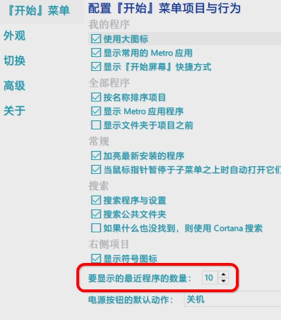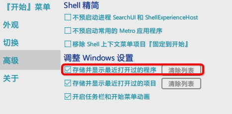 在高级里面勾选“存储并显示最近打开的程序”。