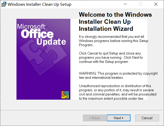注意:不要使用Windows Installer Clean UP程序删除Microsoft Office 2007 安装信息。