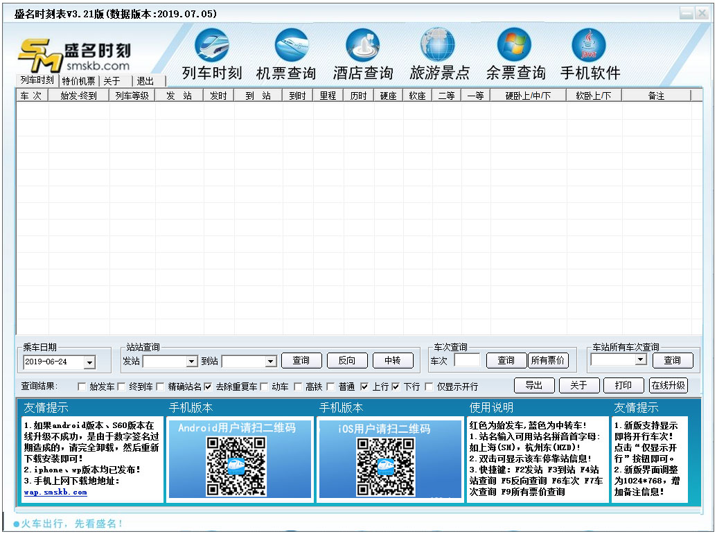 盛名时刻表是一款最专业的列车时刻查询软件:唯一一款能对票价进行较为正确处理的时刻表软件!数据更新最为及时,随铁路运行图的调整及时更新!