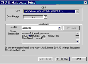 要注意的是,其下拉列表中的硬件型号有些不大准确,要想获取准确的硬件支持信息,请到其帮助文件中找到Appendix A:Mainboard Manufacturers in Taiwan 和 Appendix B:Processor Information选项,里面有详细的硬件资料,一切应该以它们为准。