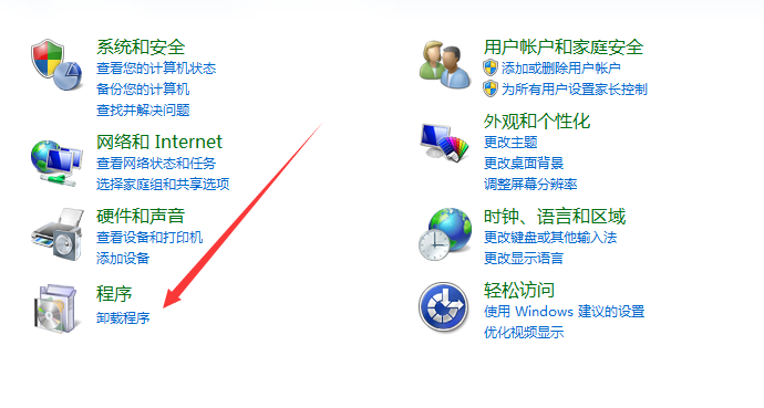 1、打开控制面板,点击卸载程序。