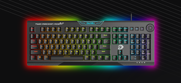 采用独立双区RGB灯光系统,多达40颗的LED组成底盘大包围灯带,创造出灵动梦幻的氛围灯效;同时键盘的每一颗按键支持自定义,展现出淋漓尽致的华丽灯效。且整个灯效系统仅需3颗按键控制完成,带来灵活便捷的操作体验。