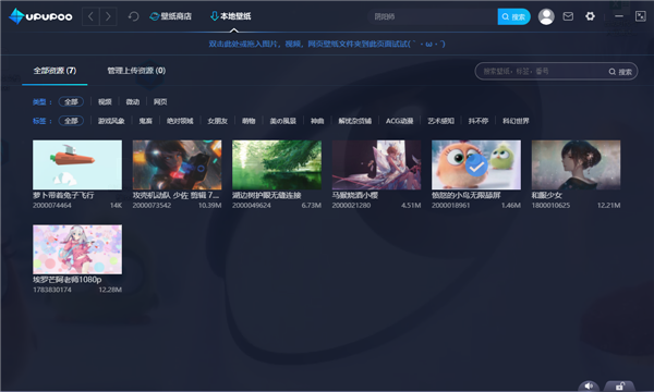 6、点击UPUPOO顶部的【本地壁纸】,就可以查看你下载的壁纸了。