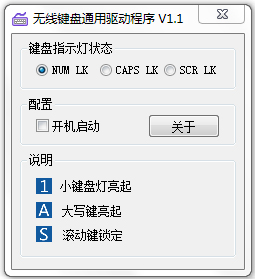 无线键盘通用驱动程序是一款简单实用的无线键盘指示灯驱动工具。如果您的无线键盘指示灯出现灯不亮的问题可能就是缺少此款驱动的问题,安装一下就可以显示大小写切换键了,程序绿色免安装,下载即可使用,支持开机启动。