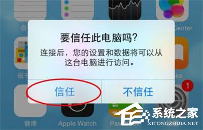 2、打开itunes工具软件,把iphone手机或ipad连接电脑,手机上有提示请点“信任”;