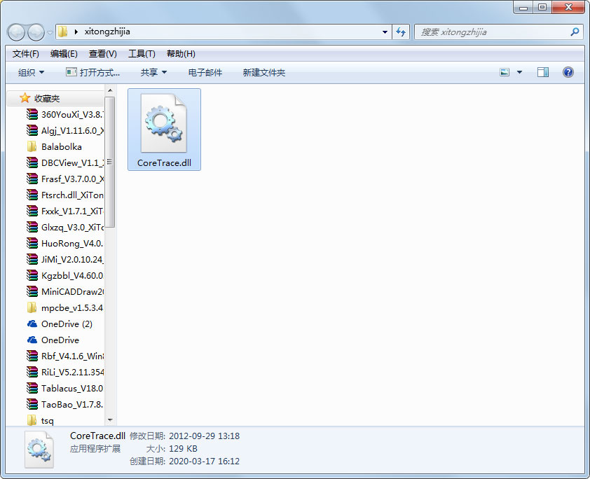 2、复制文件“CoreTrace.dll”到系统目录下;