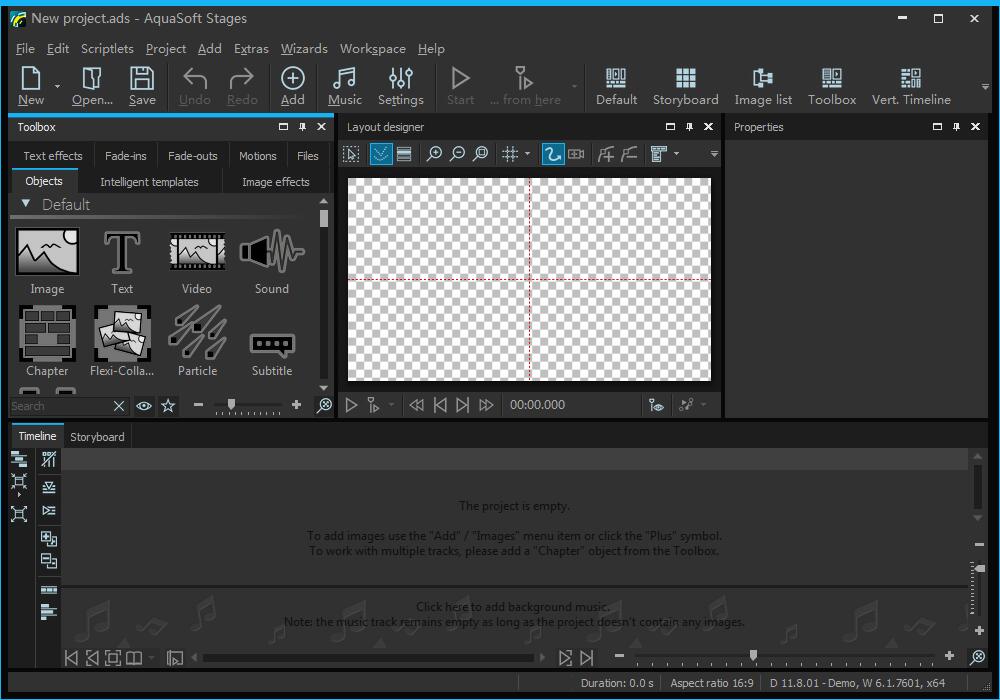 AquaSoft Stages 12是一款功能强大的幻灯片以及演示文稿的制作工具,为用户提供了制作幻灯片以及演示文稿的各种工具,满足用户的各项制作需求。AquaSoft Stages还提供了一百多种视觉特效,都是可以免费使用的。