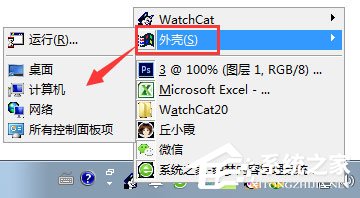 4、外壳包括了运行,桌面、计算机、网络、所有控制面板项;