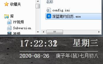 一款深蓝自用的可以在桌面上动态显示时间,星期,日历,农历的极简小软件。可以配置为居中靠上,或者靠右下显示。(动态更新)