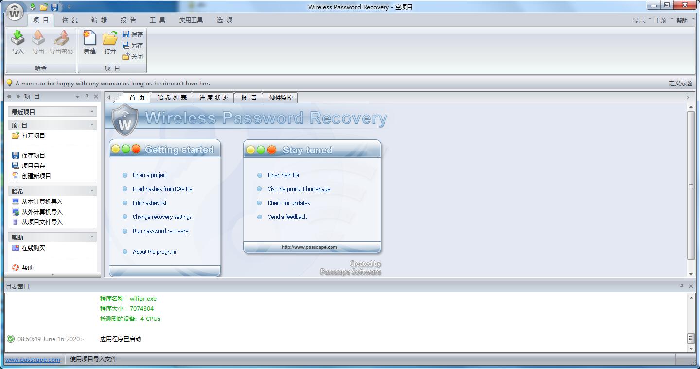 Wireless Password Recovery是一款操作简单的WIFI密码获取工具,通过软件用户能够轻松分析目前所处在网络的WIFI的密码并获取,用户如果使用笔记本电脑可以利用软件链接免费的WIFI使用,内置支持使用CPU和GPU电源的密码搜索。