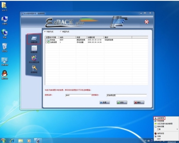 Acer软件保护卡提供Windows之上的进度建立/恢复操作,也提供Pre-OS(开机画面)的进度创建/恢复操作支持。