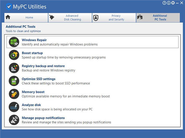 MyPC Utilities是一款非常不错的系统优化和清理工具,这款软件可以帮助使用者查找和删除重复的文件、照片和视频。快速的帮助用户将电脑的一些隐藏磁盘垃圾快速清理出来,也能对电脑的一些进程进行检测关闭,有效提高电脑运行速度,快来下载体验吧!