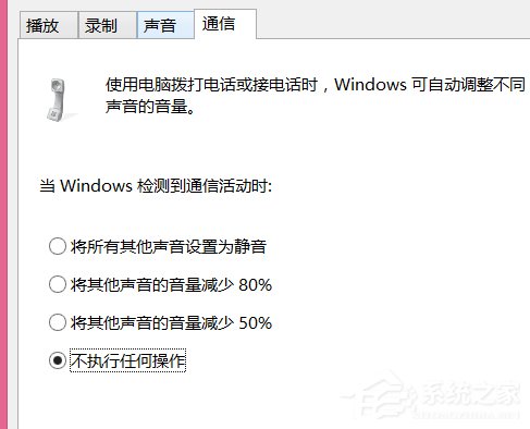 4、在点下通信选项卡,选择最后一个【不执行任何操作】点确定即可。