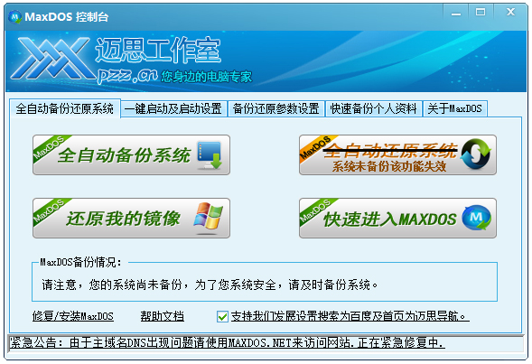 13.增加在WINDOWS下直接查看系统是否备份,此功能在开始菜单的,迈思工作室下。