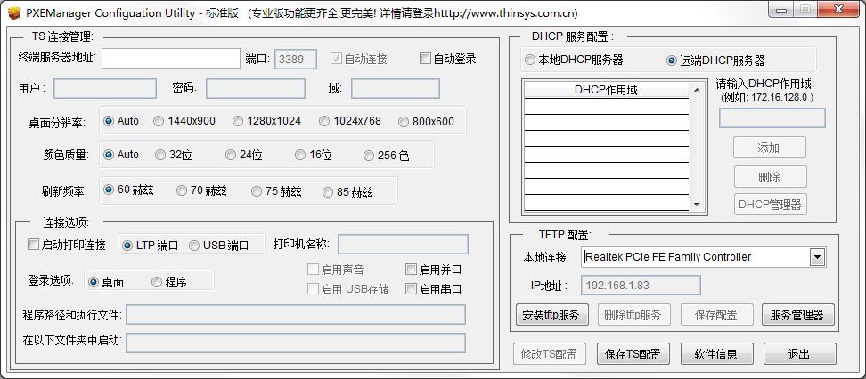 Thinsys由ThinclientSystem组成,顾名思义就是瘦客户机操作系统(即终端机操作系统),与市场上终端机上运行的操作系统一样。区别在于我们增加PXEThinOS技术,实现转换传统电脑成为终端机,并连接终端服务器,运行Windows的各项应用。由于该软件针对电脑进行转换,所以又称Thinsys转换系统。