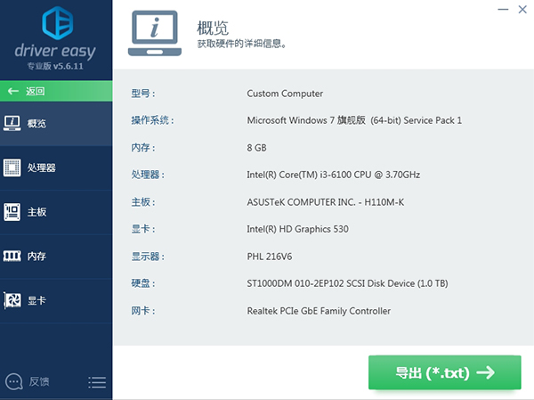 但是,您也可以查看有关硬件的数据,例如视频卡,监视器,硬盘,网卡和声卡。