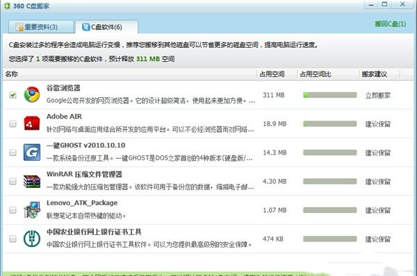 4、支持重要资料和C盘软件两个模块的搬迁。